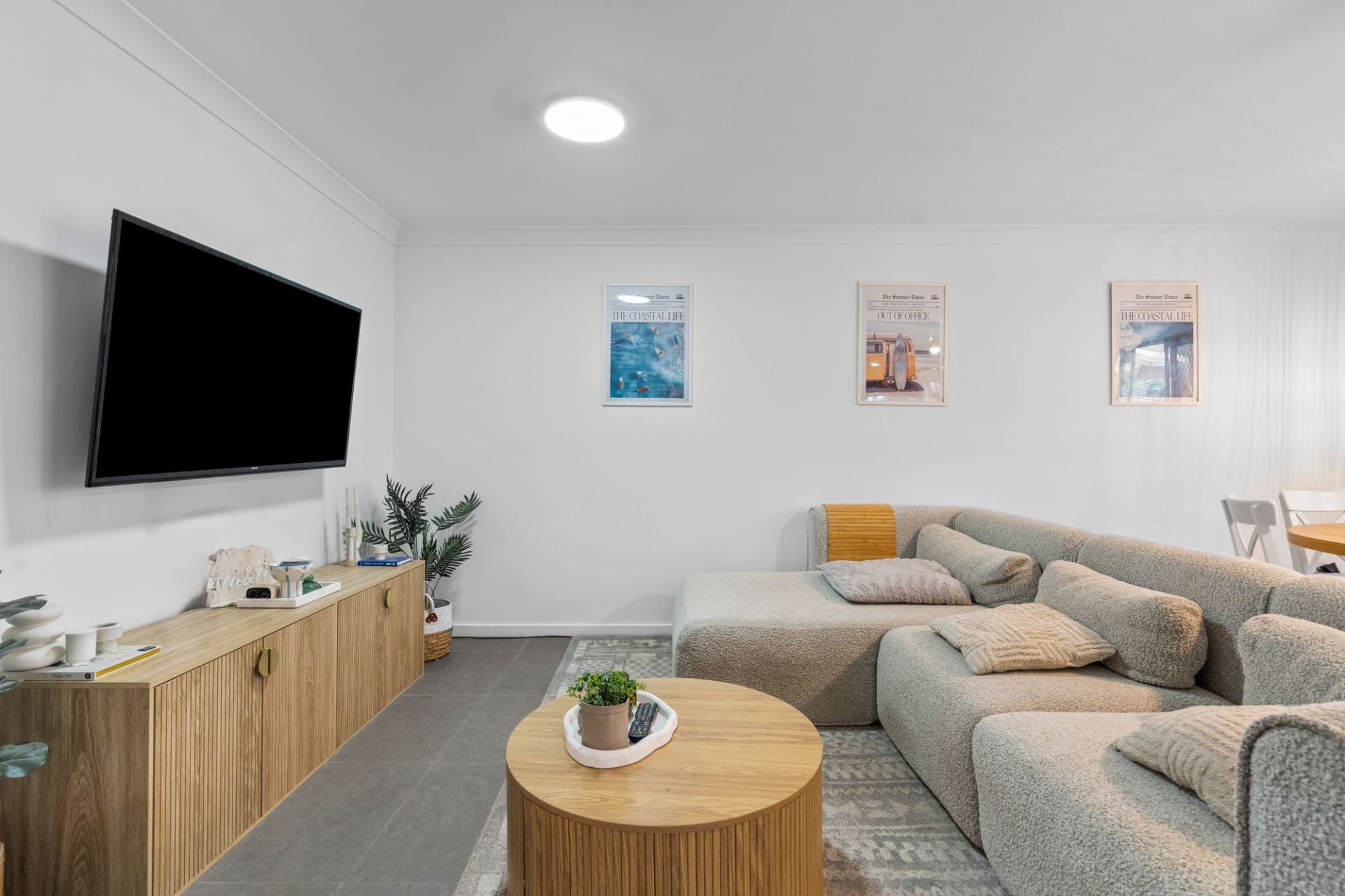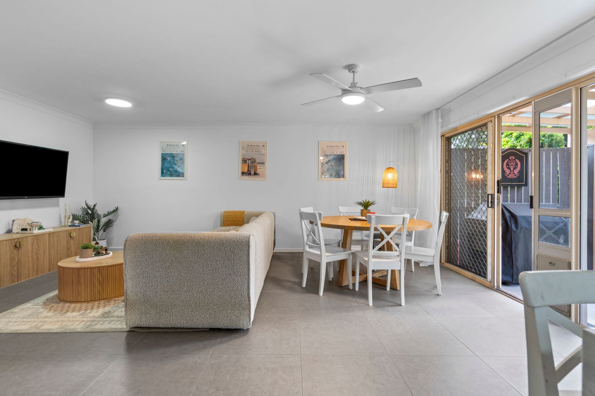 Renovated in a timeless palette of greys and whites, the interiors feel fresh and contemporary, complemented by warm timber features that add depth and balance. The open-plan living and dining zones are generously sized, creating a comfortable, functional layout that never feels cramped. The kitchen is well-appointed and flows naturally to the dining and lounge areas, extending to a private outdoor alfresco space with low-maintenance artificial grass and a near-new fence.